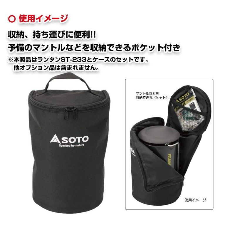 虫が寄りにくい効果のあるランタン 3つの効果で虫除け対策万全 「ハーフストライプホヤ」で、虫の感じ取りにくい波長の長いオレンジ発光に 市販の蚊取マットが装着できる「蚊トリフレクター」付き 「リフレクター」装着で、虫がいる森側の光をカット パワーブースター標準装備 コンパクトに収納可能 専用ケース付き ケースには予備のマントルなどを収納できるポケット付 本体サイズ 直径13.6×高さ37.5cm 本体重量 1.3kg 照度 660ルクス(ST-760使用時) 使用時間 約3時間(ST-760使用時) ランタンケースサイズ 幅18×奥行17×高さ29cm ランタンケース重量 約132g ※ボンベ別売3つの効果で虫対策は万全で専用ケース付き!