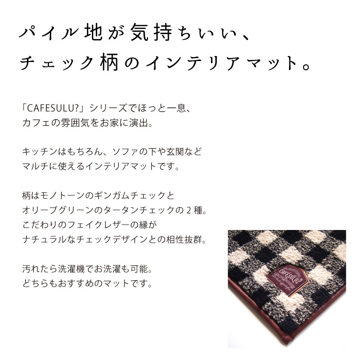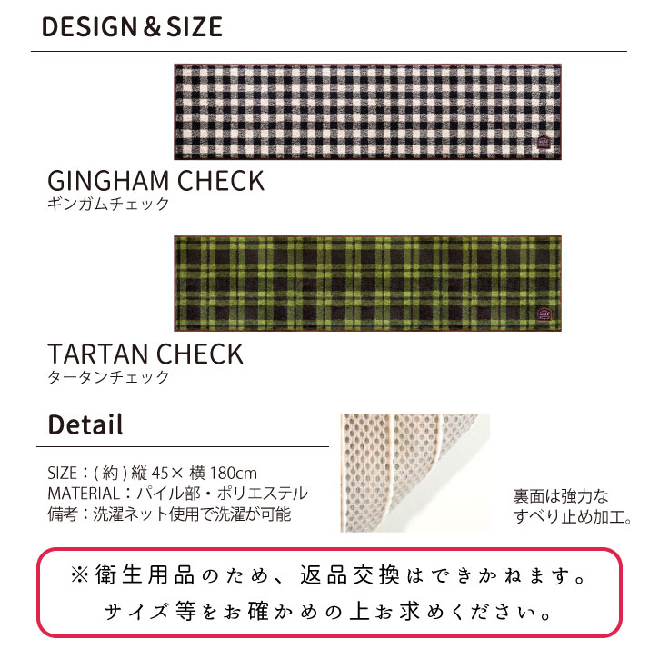 キーワード インテリアマット 玄関マット リビング 洗濯 丸洗いOK 洗える ギンガムチェック タータンチェック レ ザー ロング 45×180cm 室内 パイル生地 おしゃれ かわいい ふわふわ 201803-01
