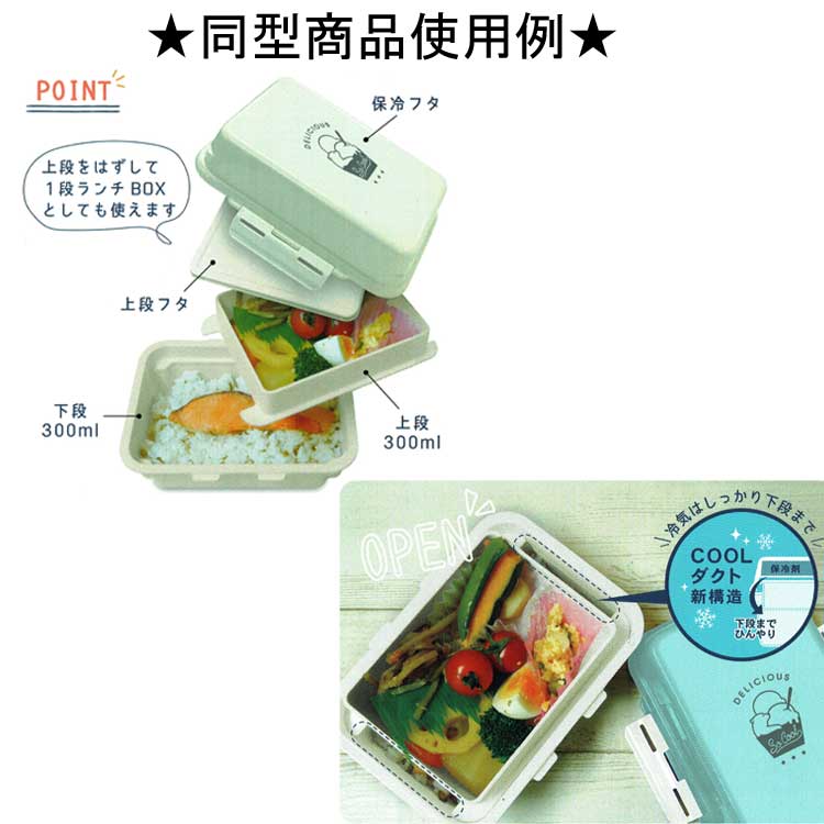 冷凍庫で保冷フタを一晩凍らせて、食材を詰めて保冷フタをセットするだけ!5時間半後でも15℃をキープ!毎日のお弁当に、これからの季節におススメのアイテムだよ(^O^) 仕様内容 【サイズ】約H81×W166×D125mm 【販売サイズ】約H220×W125×D81mm 【容 量】600ml(上段:300ml 下段:300ml) 【素 材】本体・留め具・仕切り:ポリプロピレン 保冷フタ:ABS樹脂 パッキン:シリコーンゴム 【保冷時間】上段・下段使用時5時間 下段のみ使用時5.5時間 【生産国】日本 【注意事項】 ※フタに保冷剤と断熱材が装備されています。