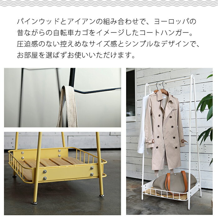 商品名 ビーワイケージハンガー 特徴 パインウッドとアイアンの組み合わせで、ノスタルジックな自転車カゴをイメージしたコートハンガー。