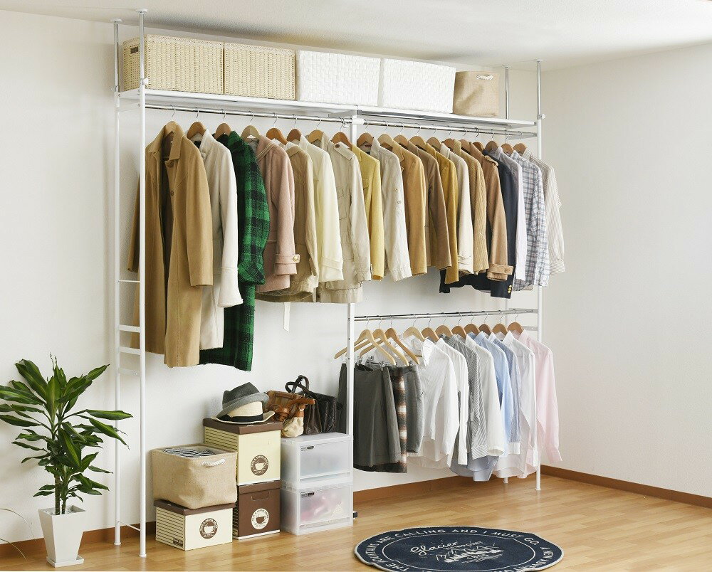 ツッパリクローゼットハンガーラック ロータイプ【ワイド/WH】人気 商品 送料無料 父の日 日用雑貨